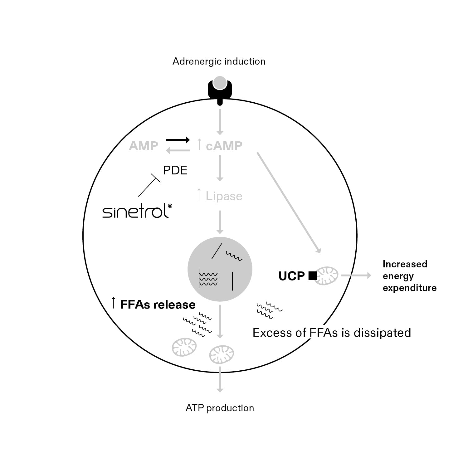 In addition, Sinetrol® increases the production of uncoupling proteins (UCPs),which enhance metabolism and aid in converting fat into energy. This is achieved by amplifying a cellular signal that promotes fat burning, effectively converting surplus calories into heat.