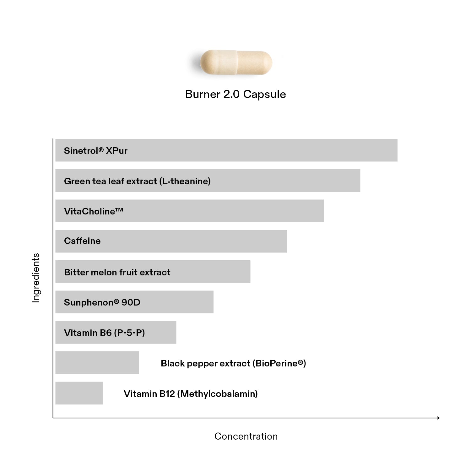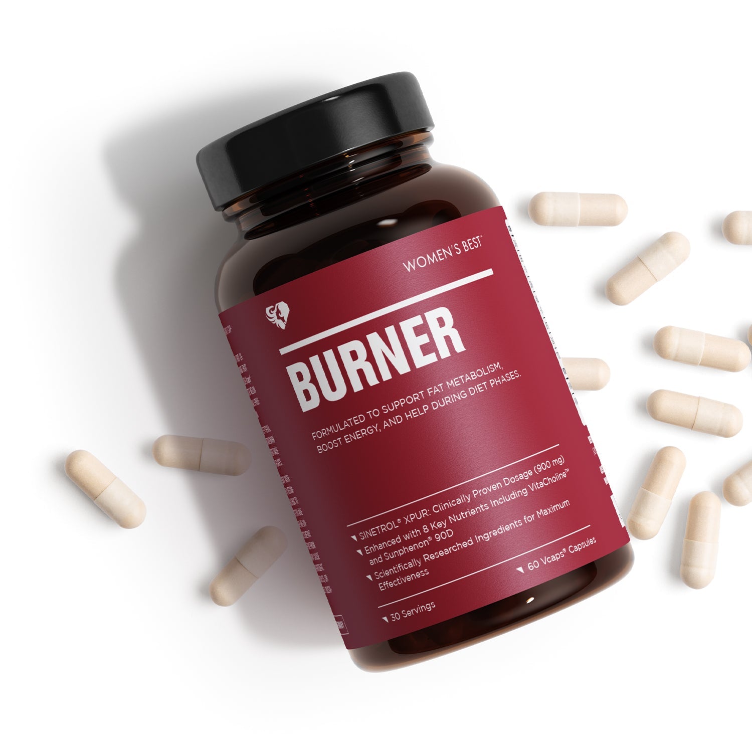 Sunphenon® 90D and VitaCholine" are two patented active ingredients that we have integrated into our Burner Capsules to promote fat burning.Sunphenon® 9OD is a green tea extract with a high content of epigallocatechin gallate (EGCG), which plays a crucial role in stimulating fat metabolism.